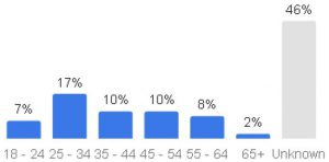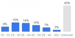 サイト訪問者の年齢も英語圏の結果に近く、25歳~34歳の若者の15%をピークに、高齢になるに従って割合が減っていくというゆるやかな曲線を描いています。