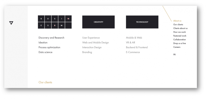 余白を活用したシンプルでスタイリッシュなTopページと、大胆なタイポグラフィを活用しています。動画を前面に押し出し、視覚的訴求を強調する「About us」ページ、シンプルにかつ焦点を絞った企業理念を伝えるメッセージなど、究極的にシンプルであり、斬新な構造・デザインを持つウェブサイトです。