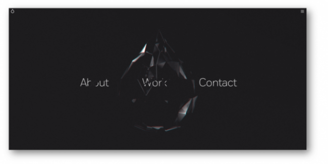 右上のメニューバーをクリックすると、中央に「About  Work  Contact」のメニューが出現します。「Work」をクリックすると、事例ページへと誘導されますが、ここもまた独特な世界観で表現されており、滑らかなスクロール、動画、静止画、3D、タイポグラフィ、余白を使った美しいデザインを存分に味わうことができます。