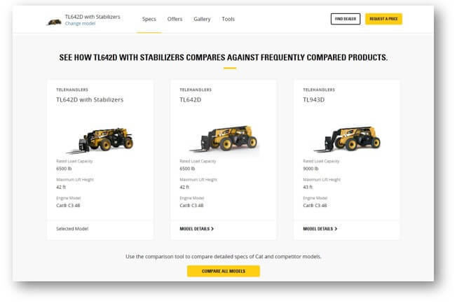 また、特筆すべき点としては、ウェブサイト上で製品の「購入」まで出来てしまう機能を実装していることです(外部サイトへは飛びません)。非常にニッチな製品を扱っているにも関わらず、ログインをすれキャタピラーが取り扱うほぼ全ての製品の価格が明確に提示されます。ダイレクトで購入が難しい場合でも、近くの取り扱い業者まで明確に提示できるような非常に優れたユーザビリティを提供しています。