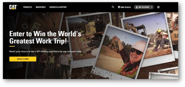 色はブランド構築に大きく影響していて、ユーザーの第一印象の約9割は、色によって決まるとも言われています。キャタピラーのウェブサイトは、黒・黄色・白を使用し、色のコントラストをうまく活用することで、メッセージやCTAを際立たさています。ユーザーに注目してもらいたい情報やユーザーの行動を促したい部分には、色のコントラストやタイポグラフィ・鮮明な画像・空白などを上手く活用しており、ユーザーに的確なメッセージを届けています。
