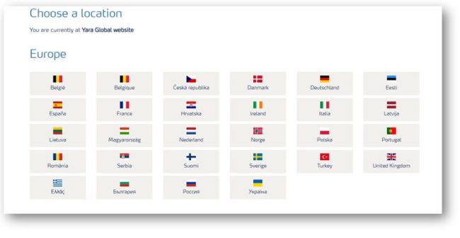 最上部に位置するメニューバー(赤枠)は「誰が・どこに行けば・何があるか」が、一目見ただけでわかるように配置されています。Yaraのウェブサイトは、非常に多くの情報・機能が必要となる世界最大級の肥料メーカーであるにも関わらず、ユーザーが欲しい情報をできるだけ分かりやすく配置し、スムーズに目的の場所まで誘導することができるように設計されています。
