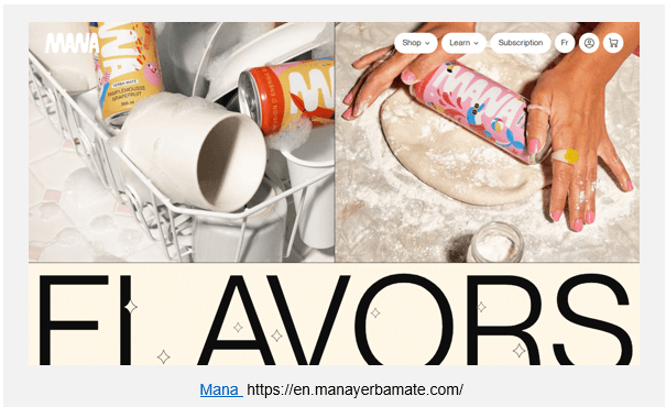 「オーガニック」を売りにする場合、ブランドイメージに「ナチュラル・健康的・安心」といった側面を採用する企業が多いなか、マナのウェブサイトは鮮やかな色使い・大胆なアニメーション・カラフルでダイナミックなグラフィックスタイルなどを全面に押し出しています。