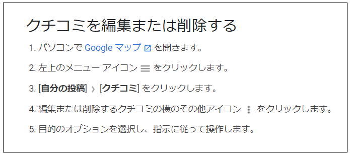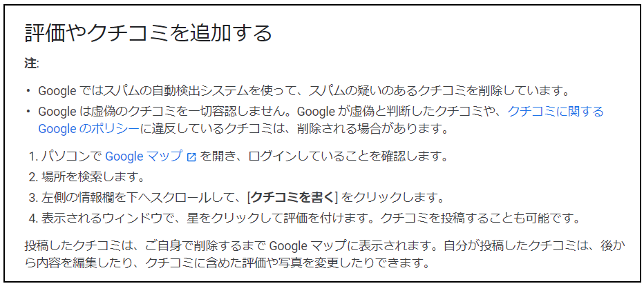 評価を企業側の権限で変更することはできませんが、悪質であったり、サービスとは関連のない評価やクチコミについては、Googleに連絡することで削除することが可能です(Googleの「口コミに関するポリシー」)。