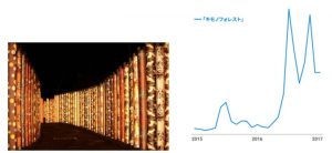 観光地の一例として、京都の着物フォレストが非常に人気。近年急激に検索ボリュームが増加