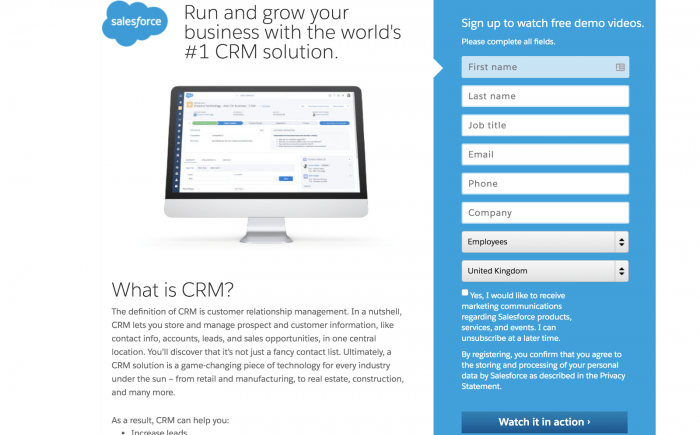 Salesforceは明確な見出しとメッセージが伝わってきます。