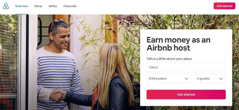 百聞は一見に如かずと言いますが、上記はAirbnbのサイトです。キャッチコピーが「Earn money as an Airbnb host」「Airbnbホストになって、お金を稼ぎましょう」というフレーズと共に、男性が(たぶん)契約者と握手を交わす写真を使用しています。視覚的な画像情報が入ることで、サイト訪問者がより行動を起こしやすいフレーズへ向けて誘導することができます。